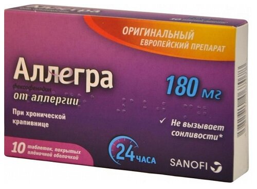 - Хроническая идиопатическая крапивница (для уменьшения симптомов) — таблетки 180 мг.