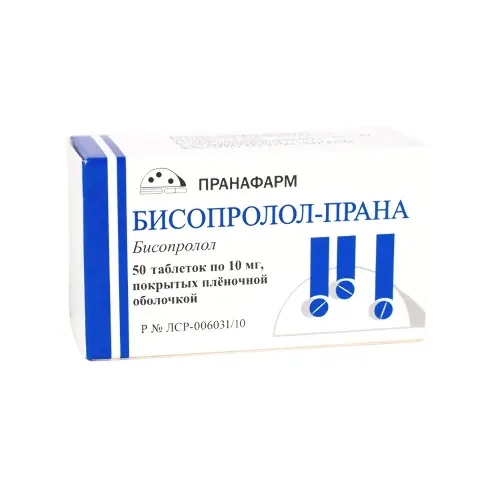 Бисопролол-Прана – это рецептурный лекарственный препарат в форме таблеток, покрытых оболочкой, с дозировкой 10 мг. Он относится к группе селективных бета1-адреноблокаторов и применяется для лечения сердечно-сосудистых заболеваний.