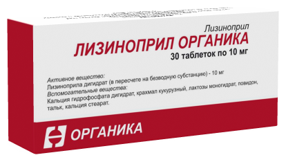 - Повышенная чувствительность к Лизиноприлу Органика или другим ингибиторам АПФ, другим компонентам препарата.