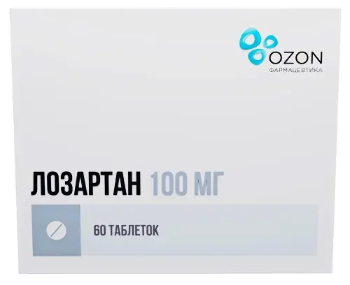Действующее вещество: лозартан калия - 100 мг в 1 таблетке.