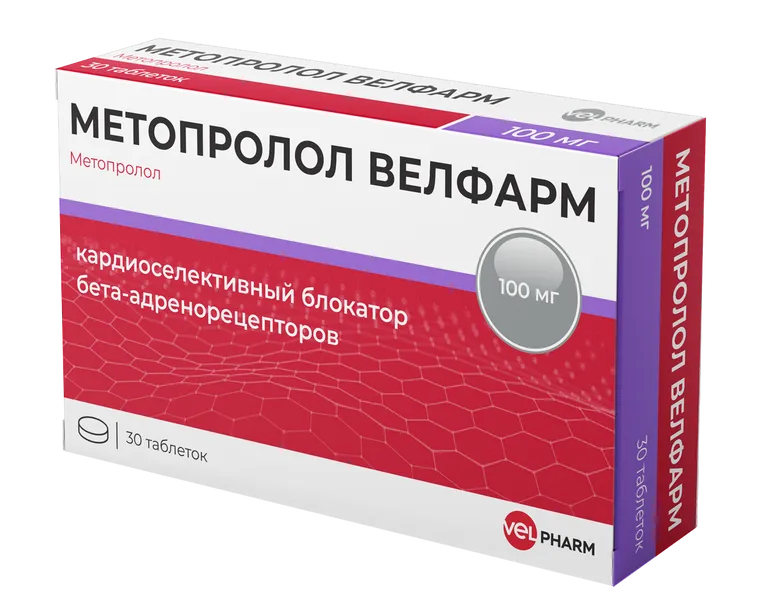 Метопролол Велфарм — это рецептурный лекарственный препарат в форме таблеток, содержащий метопролола сукцинат. Он относится к кардиоселективным бета1-адреноблокаторам и применяется для лечения артериальной гипертензии, ишемической болезни сердца, хронической сердечной недостаточности и других сердечно-сосудистых заболеваний.