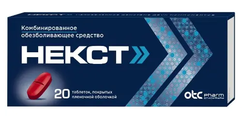 Некст – комбинированный обезболивающий и жаропонижающий препарат в форме таблеток, покрытых пленочной оболочкой. Содержит два активных компонента – ибупрофен и парацетамол, что обеспечивает комплексное воздействие на болевой синдром и лихорадку.