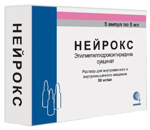 Действующее вещество: этилметилгидроксипиридина сукцинат — 50 мг/мл (250 мг в ампуле 5 мл).