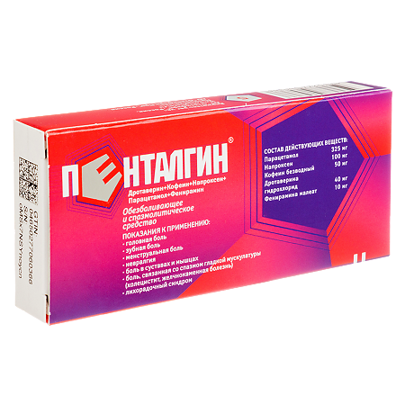 • Пенталгин — комбинированный лекарственный препарат в форме таблеток, предназначенный для симптоматического лечения болевого синдрома и лихорадки.