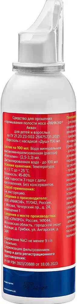 Ранкоф Аква средство д/промывания/орошения носа 150мл (душ)