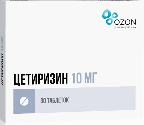 Действующее вещество: 1 таблетка содержит цетиризина дигидрохлорид - 10 мг.