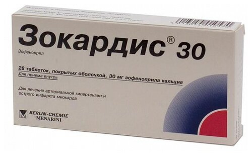 Зокардис 30 мг — это рецептурный лекарственный препарат из группы ингибиторов АПФ, применяемый для лечения артериальной гипертензии и в составе терапии острого инфаркта миокарда.